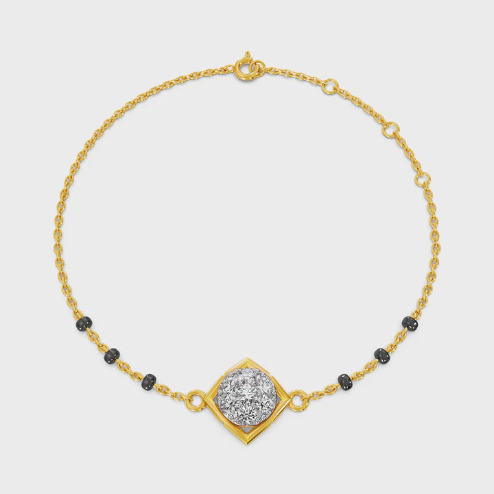A sleek geometric charm featuring sparkling stones set in a diamond-shaped frame. Finished in a warm gold tone, this minimal design adds subtle shine and modern elegance to everyday wear.