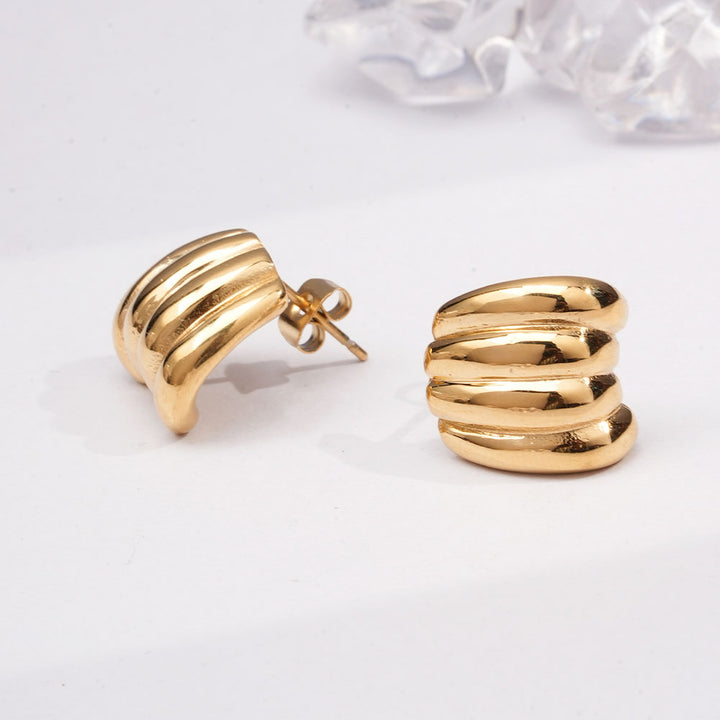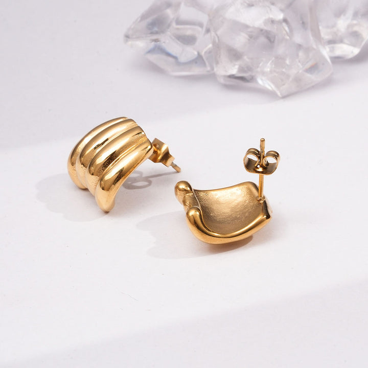 The Auric Crest Studs exude timeless sophistication with a modern twist. Crafted in stainless steel with a radiant 18k gold tone, these waterproof and anti-tarnish studs bring a subtle yet striking accent to any look. Their sculptural, crest-inspired design makes them a versatile jewellery piece, perfect for everyday wear, office attire, or evening ensembles, adding refined elegance with effortless charm.