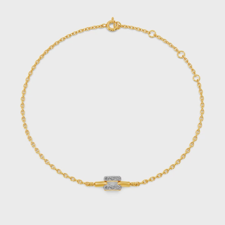 A sleek bracelet featuring a brilliant lab-grown diamond set in a balanced axis-inspired design. This piece radiates modern elegance with a touch of symmetry, making it a perfect choice for those who love minimal yet impactful jewelry that adds subtle luxury to every look.