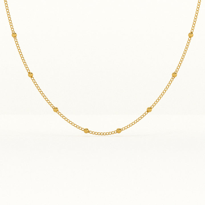 Soft textures and timeless accents. The beaded chain necklace brings gentle movement, while pearl drop earrings add classic sophistication with a golden glow. A perfect everyday - evening transition set.