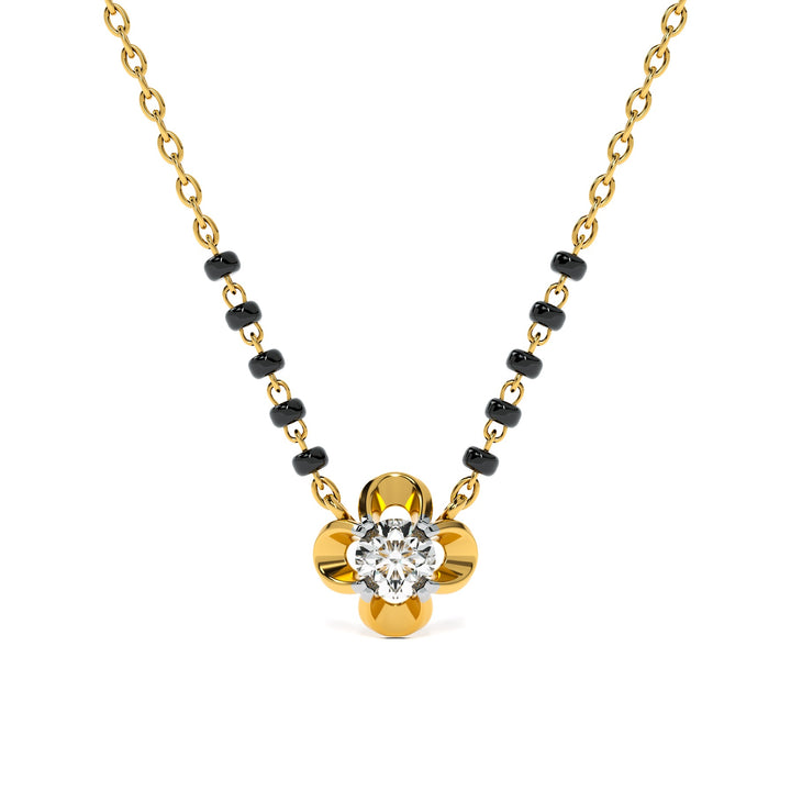 The Bloomcore Petal Lab Grown Diamond Mangalsutra brings floral charm to tradition with its petal-shaped pendant centered by a glowing diamond. Representing growth, purity, and blossoming love, the design embodies marital devotion with contemporary elegance. Each lab grown diamond is precision-set to capture light and sparkle with brilliance. A radiant piece of artistry, this mangalsutra celebrates unity, strength, and the eternal bloom of togetherness.
