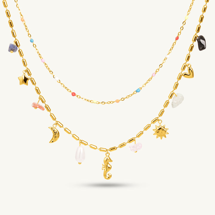 Be bold, be free, be boho. Our Boho Bead Charm Necklace is a celebration of color, creativity, and carefree spirit. Handcrafted from stainless steel and plated in radiant 18k gold, it features playful beads and charms that add a touch of wanderlust to your look. Made especially for you, this waterproof, anti-tarnish piece brings effortless vibrance to your everyday adventures.