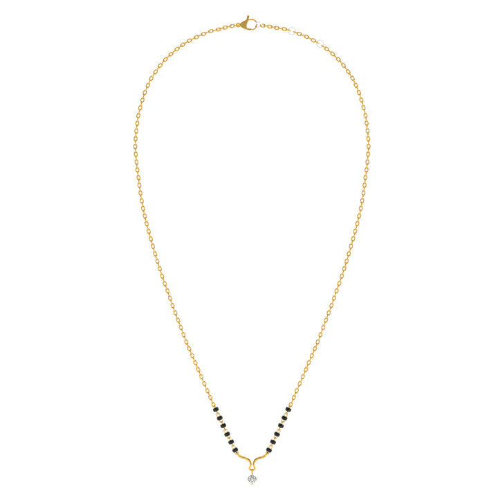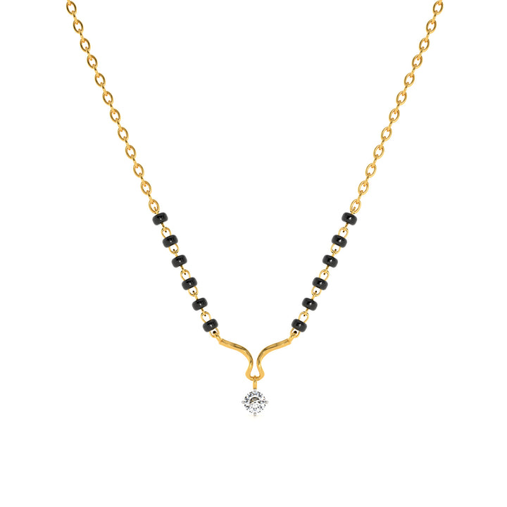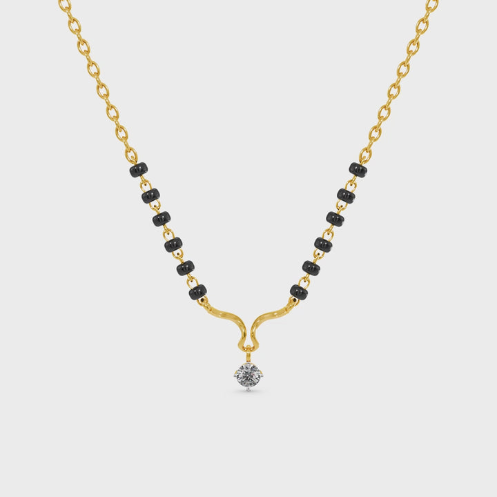 The Bondflow Y Curve Lab Grown Diamond Mangalsutra features an elegant Y-shaped design with diamonds that symbolize connection and harmony. The flowing structure represents unity and balance in relationships, while the sparkling lab grown diamonds add brilliance to its graceful form. A modern interpretation of a classic design, this mangalsutra blends timeless tradition with refined artistry, making it a meaningful expression of eternal love and devotion.