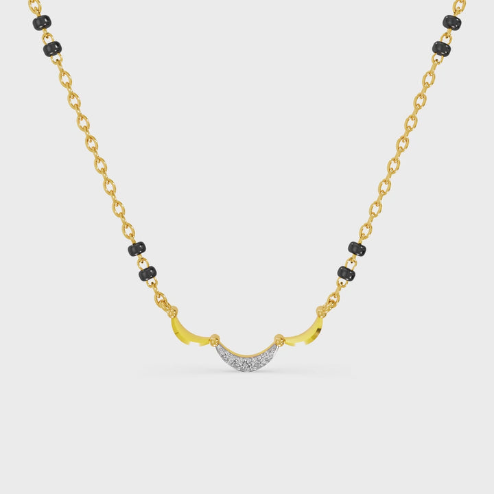 The Bondwave Glow Lab Grown Diamond Mangalsutra is inspired by the flowing rhythm of waves, symbolizing harmony, strength, and continuity in love. The diamond-studded wave design reflects the eternal journey of devotion, while each lab grown diamond adds brilliance and depth. Crafted with precision, this piece merges modern elegance with cultural significance, making it a radiant expression of unity, commitment, and timeless beauty.