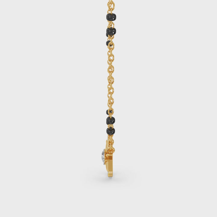 Written in the stars—Celeste Spark Mangalsutra captures celestial romance made especially for you. Crafted in 9KT gold and set with lab grown diamonds, its crescent moon and star motif adds dreamy elegance with a modern touch. Thoughtfully designed for daily wear, it brings together tradition and contemporary design, adding soft sparkle, meaning, and graceful beauty to your jewellery collection.