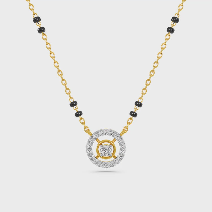 Designed to shine from every angle, this mangalsutra showcases a luminous central stone encircled by a halo of polki-style sparkle. Finished in a warm gold tone, its timeless circular design makes it an effortless choice for women who love refined, minimal elegance.