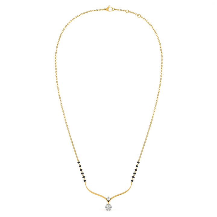 The Classic Drop Lab Grown Diamond Mangalsutra is a graceful creation featuring a solitaire-style drop pendant that symbolizes purity and timeless devotion. The central lab grown diamond shines brilliantly, representing clarity and everlasting love. Suspended elegantly from a sleek chain, the drop design adds charm while retaining the symbolic essence of a mangalsutra. Combining traditional values with modern craftsmanship, this piece embodies a promise of forever, making it both meaningful and radiant.