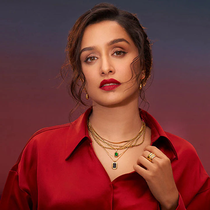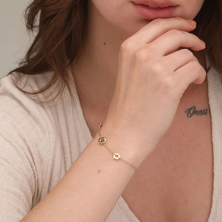 Bold color meets delicate detail. The emerald pendant brings striking elegance, while the flower bracelet adds gentle femininity - a beautifully balanced combination.