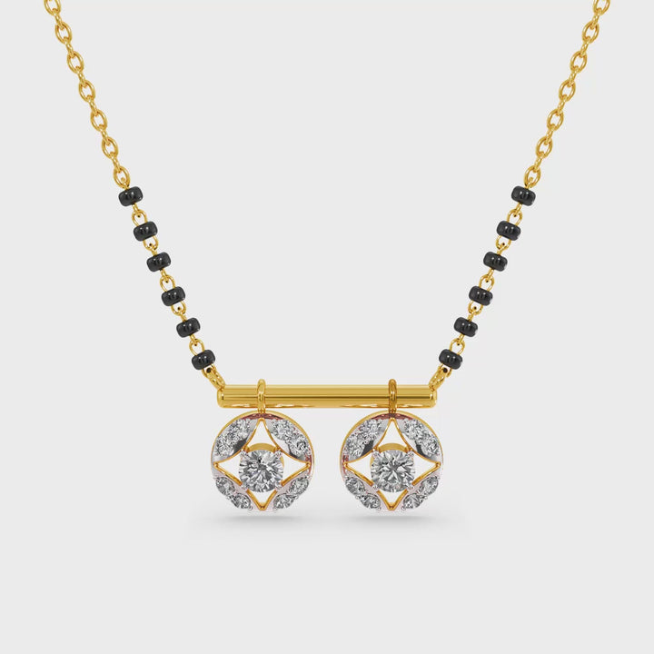 The Floral Halo Lab Grown Diamond Mangalsutra is inspired by blooming beauty, featuring a radiant floral centerpiece encircled by a sparkling diamond halo. The floral motif represents purity, grace, and renewal, while the halo enhances brilliance and depth. Crafted with precision, this mangalsutra embodies both tradition and artistry, symbolizing love and devotion in a timeless design. A perfect blend of heritage and elegance, it shines as an everlasting emblem of unity.