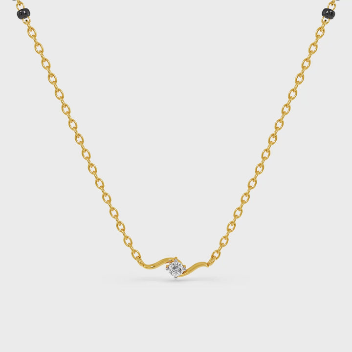 The Classic Wave Glow Lab Grown Diamond Mangalsutra features a graceful wave motif accented with sparkling diamonds, symbolizing flow, continuity, and the rhythm of everlasting love. The fluid design reflects harmony and strength in relationships, while the brilliance of lab grown diamonds adds modern sophistication. Crafted with care, this mangalsutra merges heritage with artistry, making it a timeless emblem of devotion, grace, and enduring commitment.