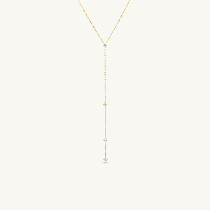 Let elegance fall in line. Crafted from stainless steel and plated in radiant 18k gold tone, our Dainty Crystal Drop Necklace brings a delicate cascade of sparkle to your neckline. Designed especially for you, this waterproof and anti-tarnish piece adds a graceful golden touch that complements every mood and moment - perfect for elevating both your everyday look and your evening elegance.