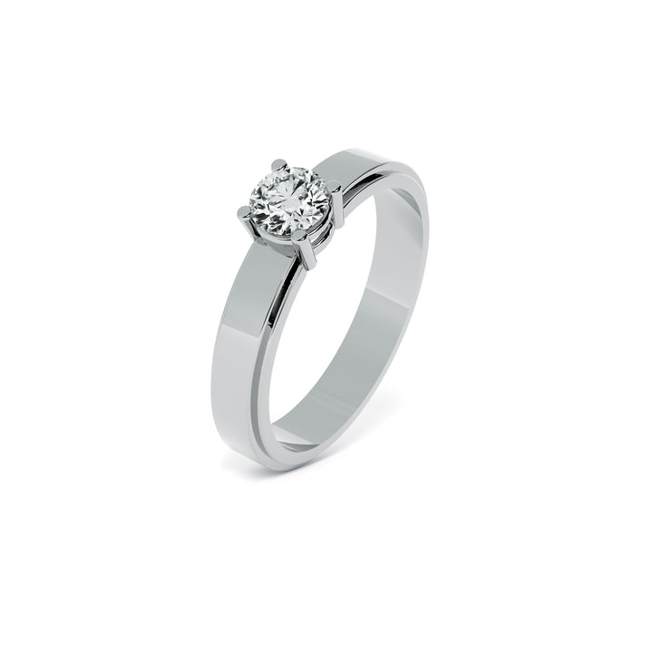 A sleek band ring featuring a single brilliant-cut diamond set with precision, creating a perfect balance of elegance and minimalism. Its clean lines and smooth finish make it a timeless accessory, ideal for engagement, wedding, or everyday wear. Designed for those who value modern jewelry with a touch of classic charm, this statement ring adds effortless sophistication to any look.