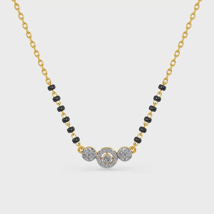 The Eternal Vows Circle Lab Grown Diamond Mangalsutra embodies unity and infinity with its elegant round motif adorned with dazzling lab grown diamonds. The pendant’s flawless symmetry reflects harmony, commitment, and togetherness. Expertly crafted, each diamond enhances brilliance, creating a design that radiates light from every angle. With its perfect balance of tradition and modern refinement, this mangalsutra symbolizes eternal promises, making it a meaningful expression of love and enduring beauty.
