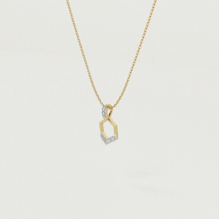 Sleek and structured, the GeoCharm necklace merges a hexagonal frame with a suspended 0.04 carat diamond. Its geometric flair adds a subtle edge—perfect for contemporary minimalists and creative souls.