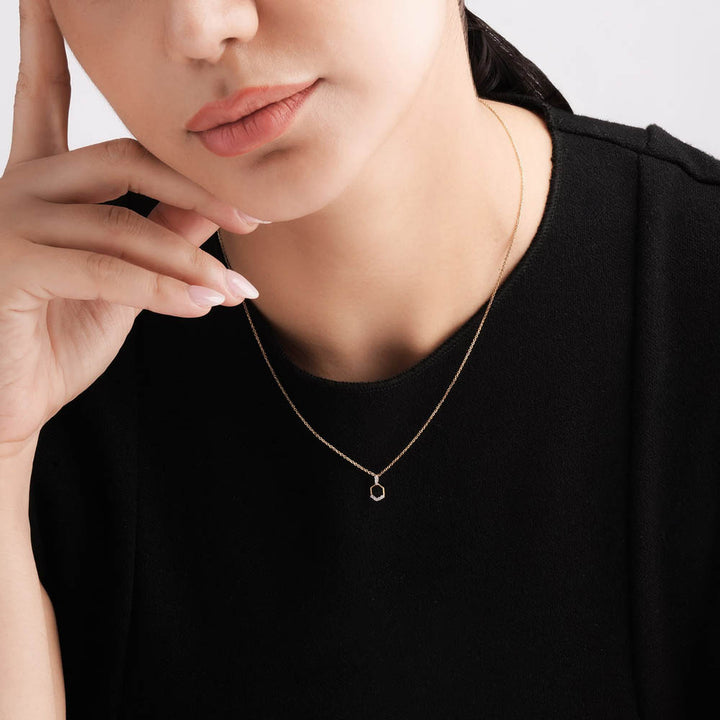 Defined by clean edges and modern geometry, the GeoCharm Necklace offers bold sophistication in a minimal form. Its hexagonal design makes it a standout jewellery piece for contemporary styling, striking the perfect balance between classic elegance and architectural edge.