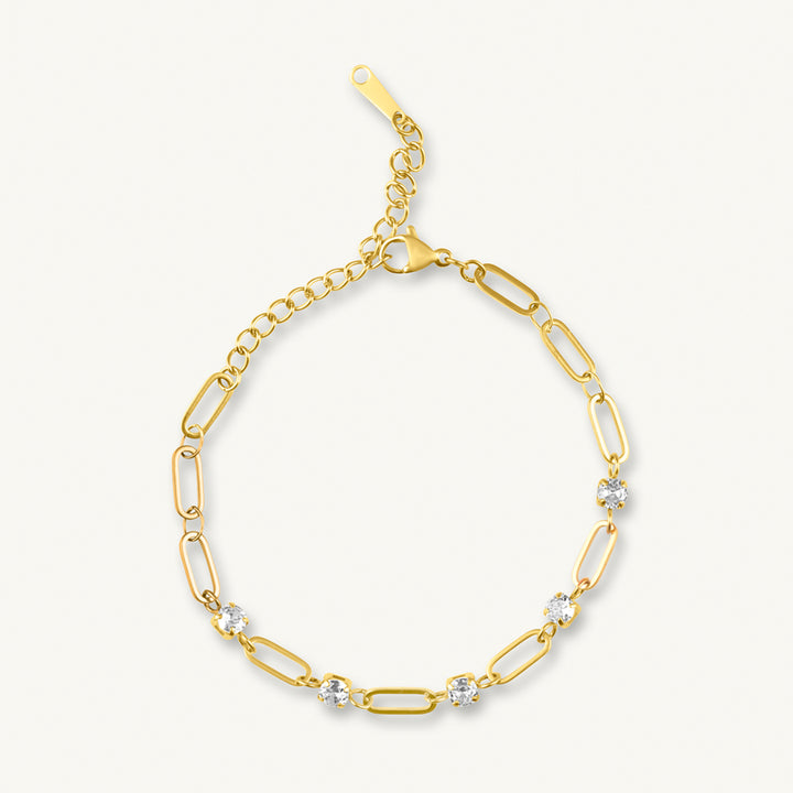 Shine bright, always. Crafted in stainless steel with an 18K gold finish, our Gleam Link Accent Bracelet blends bold links and subtle sparkle. Designed just for you, it’s waterproof, anti-tarnish, and timeless. Style it with your everyday watch or stack it with dainty chains for a chic layered look.