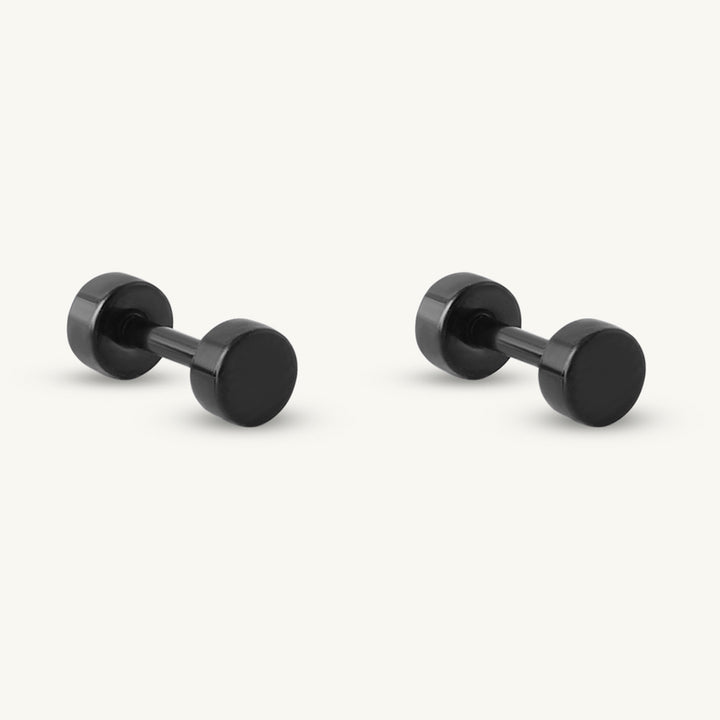 Glossy Black Dumbbell Studs