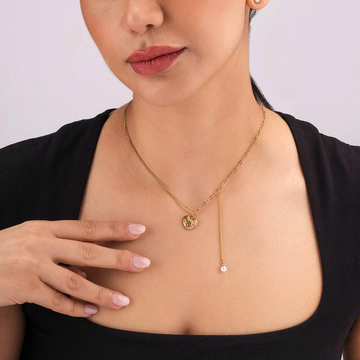 The Golden Heart Lock Pendant combines romance and symbolism with its radiant golden heart-shaped lock. Representing love, trust, and devotion, it’s a meaningful jewellery piece perfect for gifting or cherishing. Designed to balance sentiment with elegance, it’s a versatile pendant for daily wear or festive occasions. A timeless creation that reflects affection and confidence in every detail.