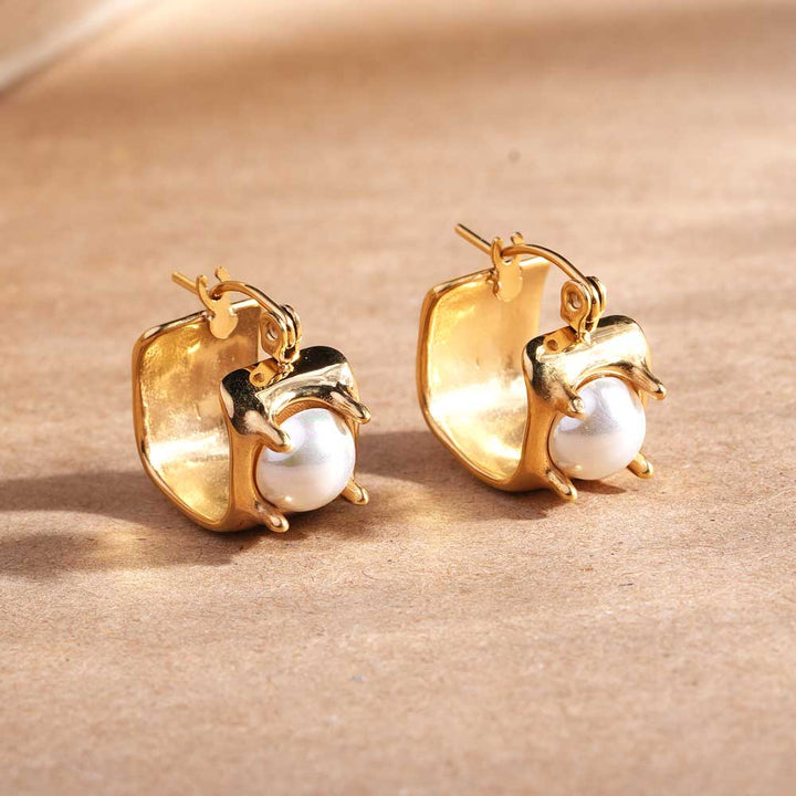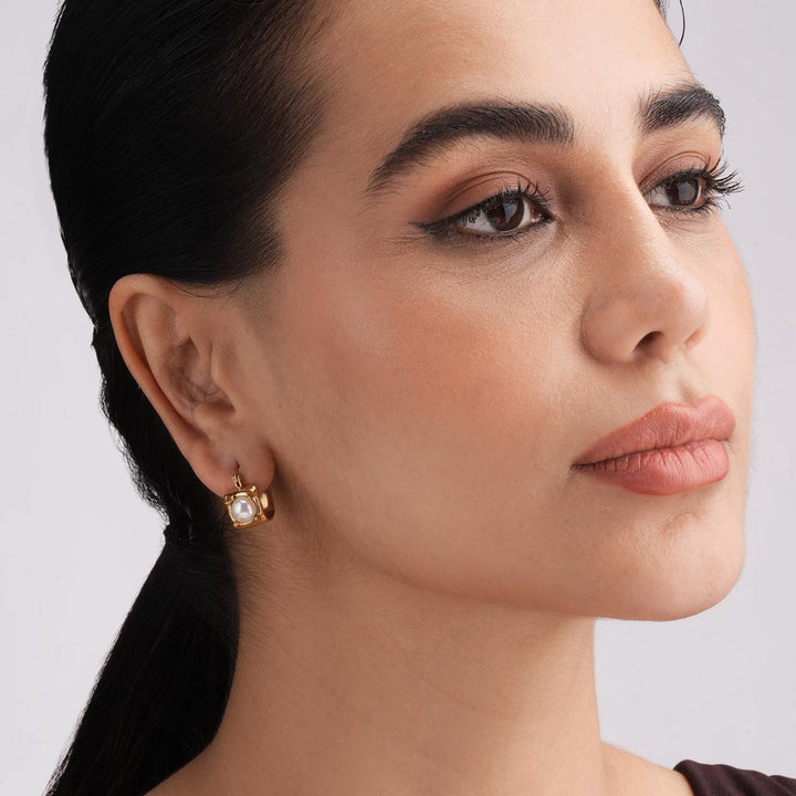 Gold Nest Earrings are designed with a golden frame gently holding luminous pearls, symbolizing elegance and warmth. Their unique nest-inspired look makes them a treasure of sophistication, perfect for celebrations or gifting. A blend of modern artistry and timeless grace, these earrings add a charming glow to your collection.