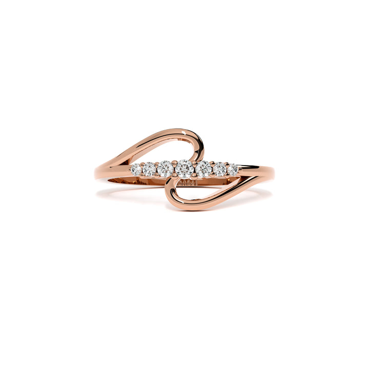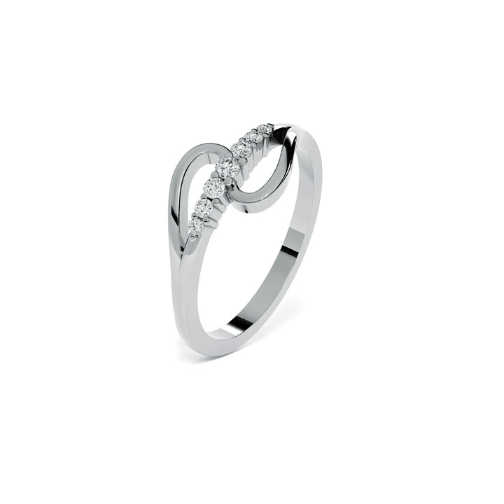 Graceful open-loop ring featuring a flowing, abstract design set with a row of dazzling stones. The fluid curves create an artistic silhouette, offering a perfect blend of modern minimalism and subtle sparkle. Ideal for adding an elegant touch to everyday or special occasion outfits, this contemporary ring appeals to those seeking unique, fashion-forward jewelry with a delicate charm.