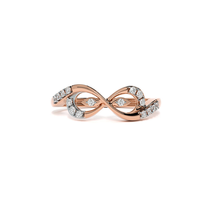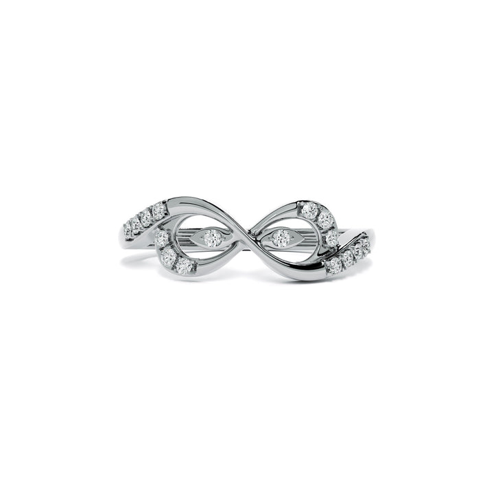 An elegant infinity-inspired ring featuring graceful loops enhanced with shimmering stones for a radiant finish. Its artistic swirl pattern blends classic charm with contemporary style, making it perfect for engagement wear, fashion rings, or stacking jewelry. Ideal for those who love unique finger rings with timeless appeal, fine detailing, and sparkling brilliance.