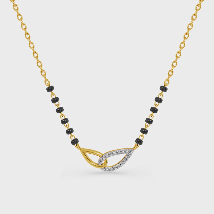 The Interlock Bond Loop Lab Grown Diamond Mangalsutra features a modern loop design with interlocking elements, symbolizing unity and an unbreakable connection. Embellished with sparkling lab grown diamonds, the pendant glows with elegance and meaning. The interlocking form reflects harmony and strength, creating a design that blends tradition with a contemporary touch. A unique representation of love’s eternal bond, this mangalsutra stands as both a meaningful keepsake and a refined piece of jewelry.