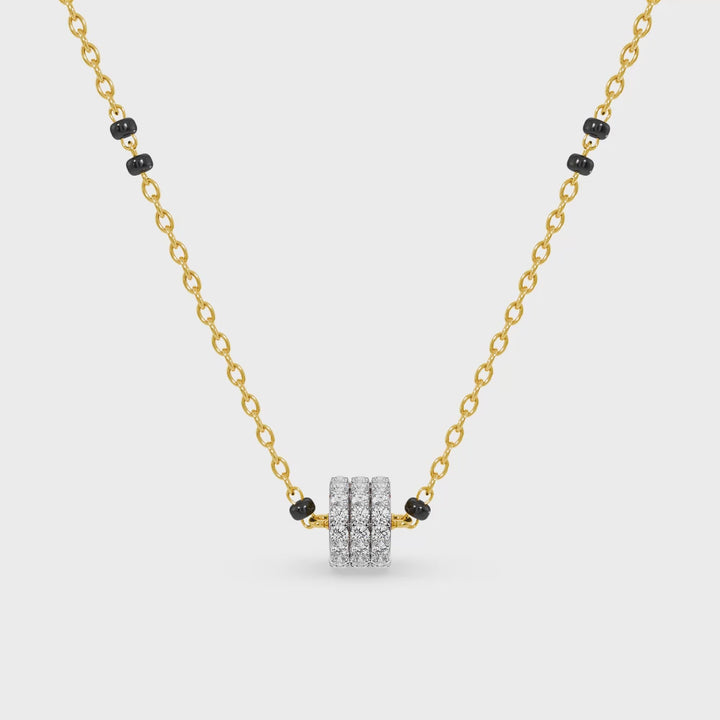 The Lattice Gleam Lab Grown Diamond Mangalsutra showcases a bold, structured design with rows of sparkling diamonds arranged in a refined lattice pattern. Representing strength, balance, and harmony, the geometric form symbolizes stability in love and unity. Each lab grown diamond is meticulously set for maximum brilliance, making the piece glow with sophistication. A perfect blend of modern elegance and traditional significance, this mangalsutra celebrates enduring bonds with timeless sparkle.