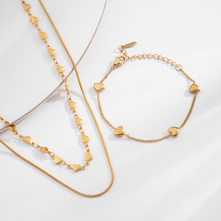 Love Embrace Two Layered Necklace & Lunar Heart Bracelet Combo Set