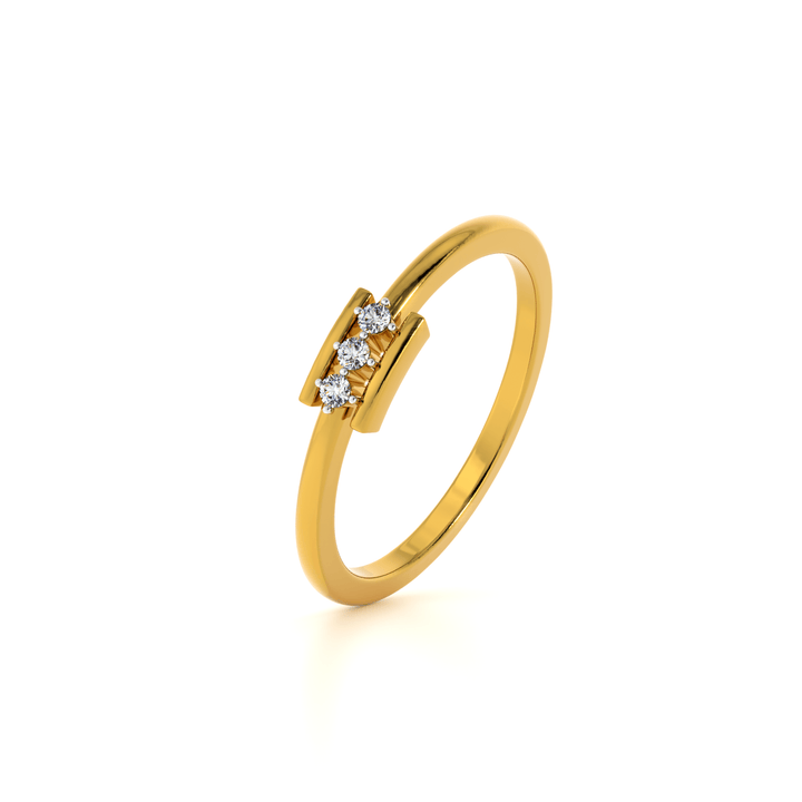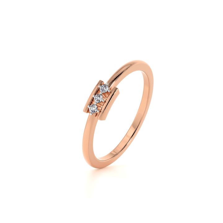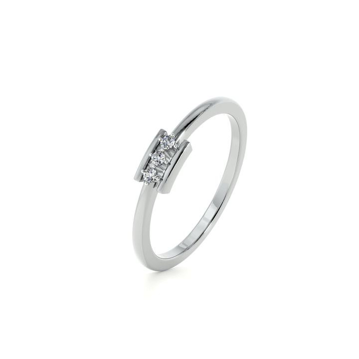 A delicate ring featuring three sparkling diamonds set in a sleek bar design that symbolizes harmony and balance. The minimalist band highlights the brilliance of the stones, making it perfect for daily wear or special occasions. Its modern yet timeless look makes it an ideal choice for those who seek elegance with a contemporary twist. A refined addition to any fine jewelry collection.