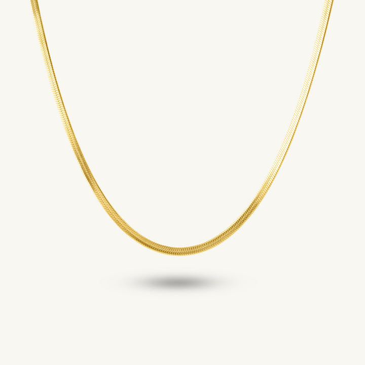 The Luxe Flat Snake Chain Necklace embodies bold minimalism with its sleek, polished links that flow seamlessly like liquid metal. Its fluid surface catches the light effortlessly, creating a mirror-like finish that defines modern elegance. Balanced between subtlety and strength, the chain’s refined structure showcases impeccable craftsmanship and sophistication. With its smooth texture and luxurious design, this necklace represents understated glamour and contemporary refinement, making it a jewellery essential of lasting significance.