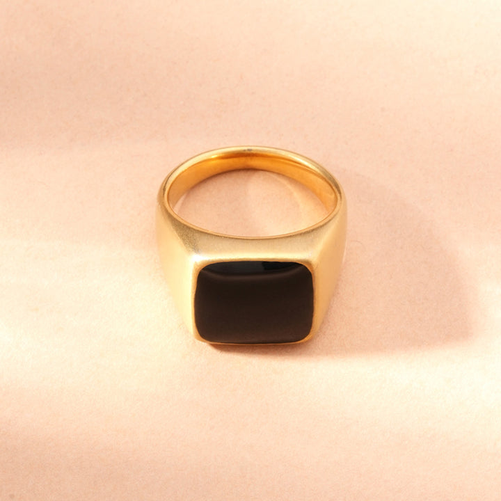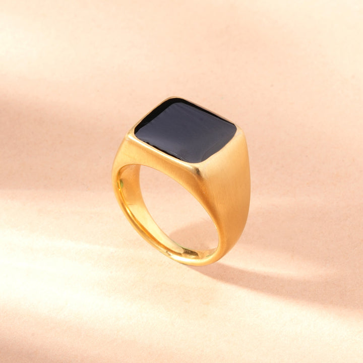 Reign in style. Our Midnight Majesty Onyx Ring, crafted from stainless steel and coated in 18k gold tone, embodies mystery and control. The onyx centre reflects depth and dignity. Waterproof, anti-tarnish, and crafted for you, for your moments of command and confidence.