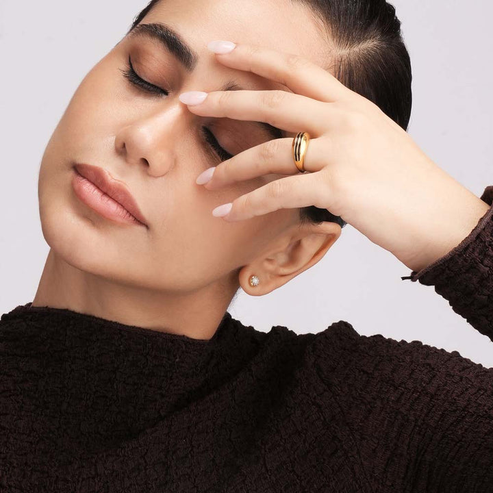 Stack with slim gold bands for a layered wave effect, perfect for day-to-night styling.