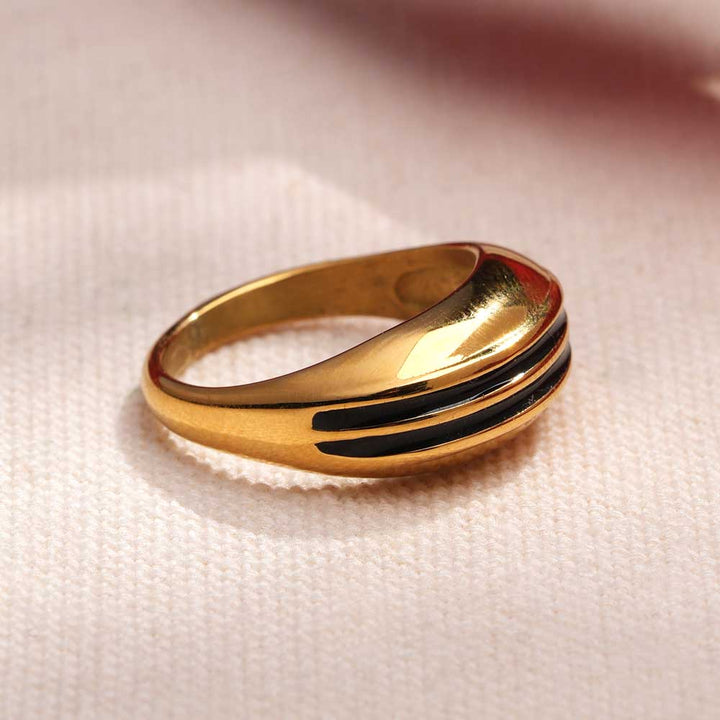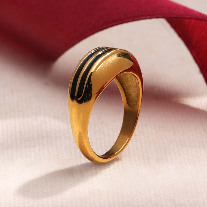 The Midnight Wave Band draws inspiration from the rhythmic flow of ocean waves, making it a standout design for those who appreciate artistic jewellery. Its undulating golden band reflects light beautifully, creating a sleek, modern aesthetic. Minimal yet striking, this ring is perfect for stacking or wearing solo as a statement of individuality. Ideal for women who love unique, designer-inspired rings that elevate both casual wear and evening looks. Available in sizes 5, 6, and 7, it’s crafted for comfort and everyday wear.