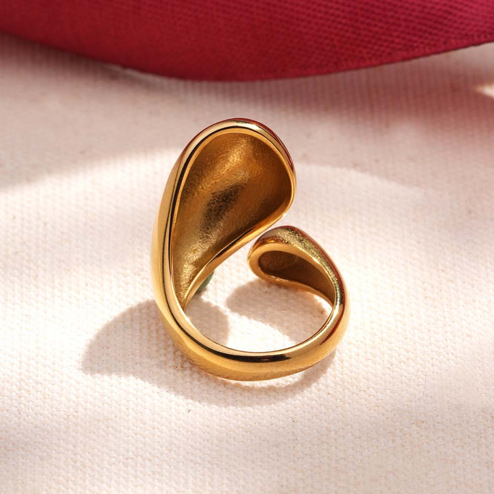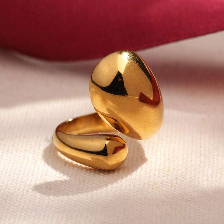 The Molten Drop Statement Ring is a bold jewellery masterpiece that captures the raw beauty of molten metal. Crafted in a fluid, organic golden design, it creates an effortlessly chic look with its sculptural form. Perfect as a statement ring for women, this contemporary design elevates both casual and evening outfits with ease. Its artistic appeal makes it a must-have for those who love modern, fashion-forward jewellery. Available in sizes 5, 6, and 7, it is the perfect fit for every unique style.