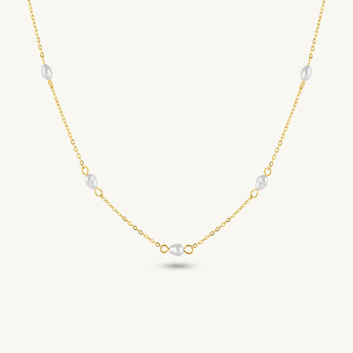 The Pearl Pathway Golden Necklace showcases luminous pearls delicately placed along a golden chain, forming a continuous and balanced design. Each pearl represents elegance, purity, and timeless beauty, while the golden links enhance the natural glow. Crafted with meticulous care, this necklace embodies grace in every detail, offering both sophistication and meaning. It stands as a versatile creation that highlights the harmony between classic pearls and modern golden design, making it a treasured piece for collectors of fine jewellery.