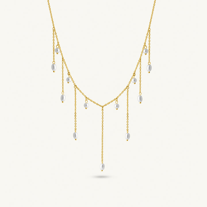 With delicate dangling pearls, this necklace complements flowy dresses, cocktail wear, or even casual pastel blouses, lending a graceful shimmer with every move.