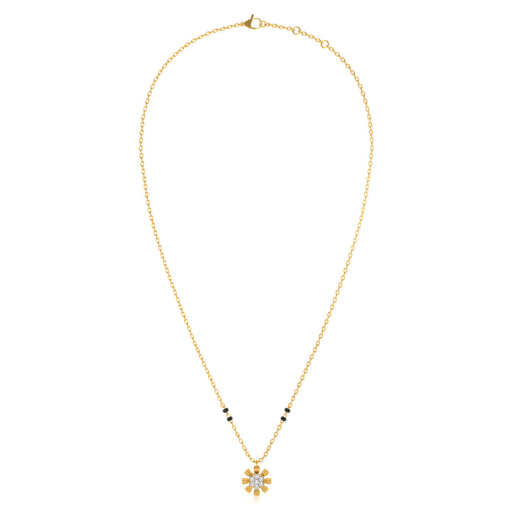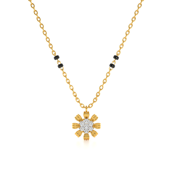 The Petalburst Glow Lab Grown Diamond Mangalsutra blooms with beauty, featuring a floral pendant crafted with radiant diamonds arranged in a petal-like pattern. Symbolizing purity, growth, and blossoming love, the design highlights the essence of devotion and new beginnings. Each lab grown diamond shines with brilliance, adding charm and sophistication. A perfect harmony of tradition and modern elegance, this mangalsutra stands as a glowing emblem of marital love and commitment.