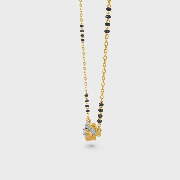 Add a touch of modern elegance to tradition with this stunning infinity-inspired mangalsutra pendant. Crafted in a sleek gold-tone finish, the flowing design is adorned with shimmering clear stones that catch the light beautifully. The gentle curve and infinity twist symbolize endless love, balance, and togetherness—making it a meaningful piece for everyday wear.