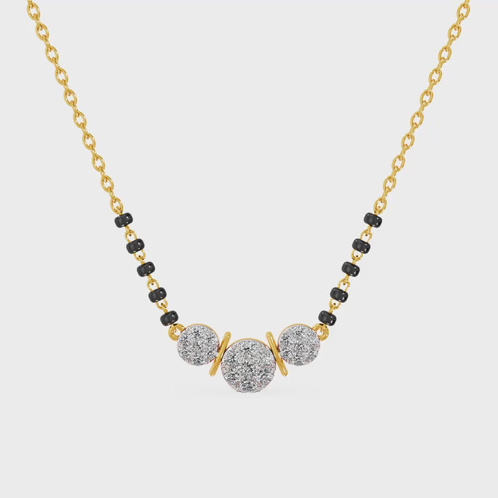 The Radiant Triple Stone Lab Grown Diamond Mangalsutra features three luminous diamonds aligned in perfect harmony, representing strength, unity, and enduring commitment. Each stone radiates brilliance, symbolizing the bond of past, present, and future. Expert craftsmanship ensures maximum sparkle and balance, making this piece both meaningful and elegant. A modern design rooted in traditional symbolism, it stands as a radiant emblem of everlasting love and marital devotion.