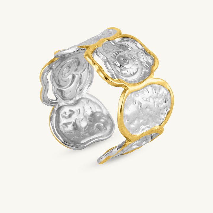 The Rose Relic Dual-Tone Ring is a bold statement piece crafted with a textured rose-inspired design that brings heritage artistry into modern jewellery. Featuring a unique blend of dual metallic tones, this ring showcases intricate surface detailing that sets it apart from ordinary designs. Its open band construction ensures comfort while the rose textures add a touch of timeless charm. Ideal for those who appreciate originality and craftsmanship, this dual-tone ring is more than just jewellery—it’s a piece of art that enhances any collection and highlights individuality.
