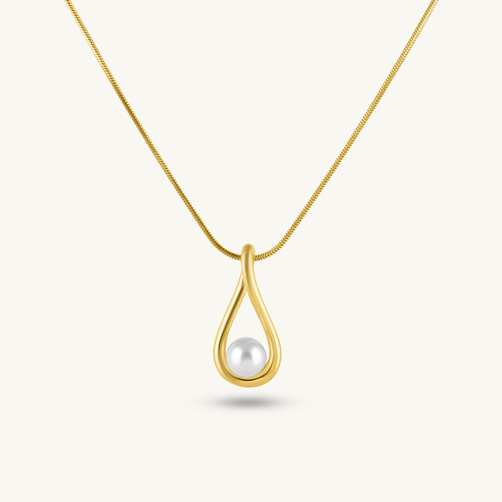 The Serene Teardrop Pearl Necklace embodies purity and sophistication with its lustrous pearl encased in a golden teardrop frame. The flowing curves enhance the pearl’s glow, creating a design that represents serenity and natural beauty. Crafted with meticulous detail, the pendant merges modern elegance with traditional charm. The golden finish provides warmth and contrast, highlighting the pearl as the centerpiece. This necklace celebrates the timeless allure of pearls, offering a piece that is both symbolic and graceful.