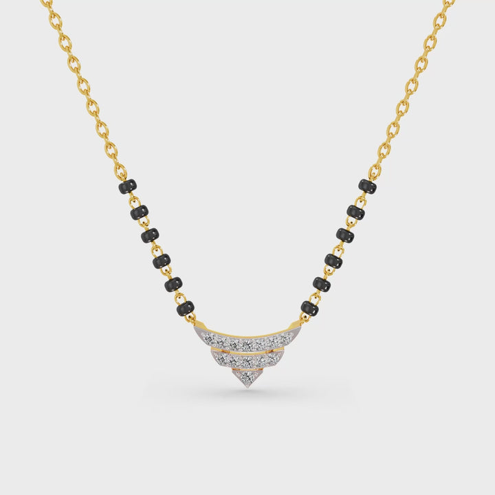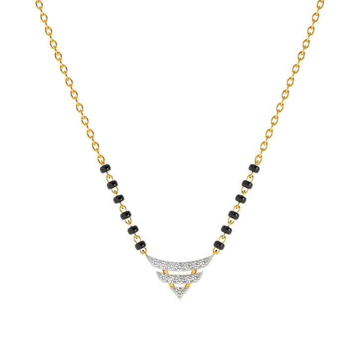 The Softline Curve Lab Grown Diamond Mangalsutra is designed with a graceful curved pendant that represents continuity and balance in love. Its flowing silhouette embodies harmony, while lab grown diamonds add sparkling radiance. Crafted for elegance, the design merges simplicity with sophistication, making it a luminous piece that symbolizes unity, strength, and timeless marital devotion.