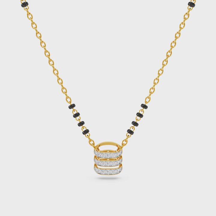 A contemporary triple-band ring featuring rows of shimmering stones set in gold. Structured and radiant, this design delivers modern elegance with standout shine.