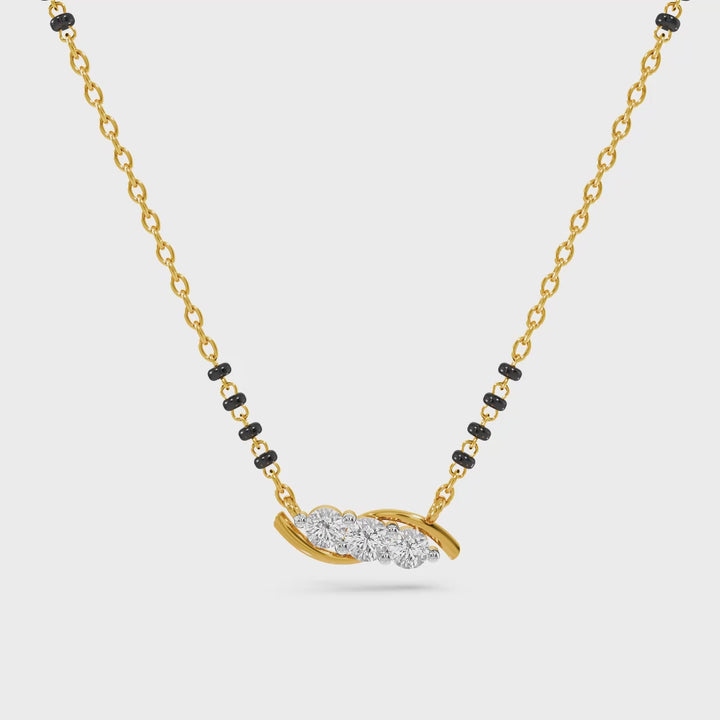 A contemporary mangalsutra designed with a smooth curved silhouette highlighted by finely set polki-style stones. Its clean, flowing form adds understated brilliance, making it a versatile choice for women who prefer modern minimalism with timeless appeal.