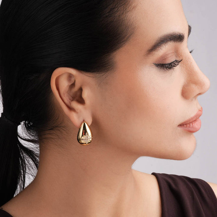 The Tear Gleam Textured Spark Studs bring effortless elegance with their timeless teardrop silhouette. Crafted with a gleaming gold finish and enhanced by shimmering stones, they strike the perfect balance between subtle charm and radiant sparkle. Lightweight yet impactful, these studs seamlessly complement everyday outfits while also elevating festive and formal looks. A refined pair that adds just the right touch of brilliance to your jewellery collection.