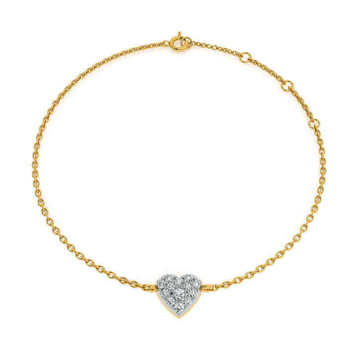 A delicate bracelet featuring a beautifully crafted heart motif accented with a sparkling lab-grown diamond, symbolizing love and elegance. Perfect for everyday wear or gifting, this design blends timeless charm with a modern touch, making it an ideal choice for romantic and personal expressions.