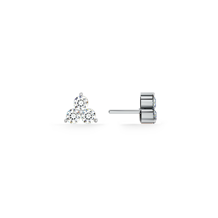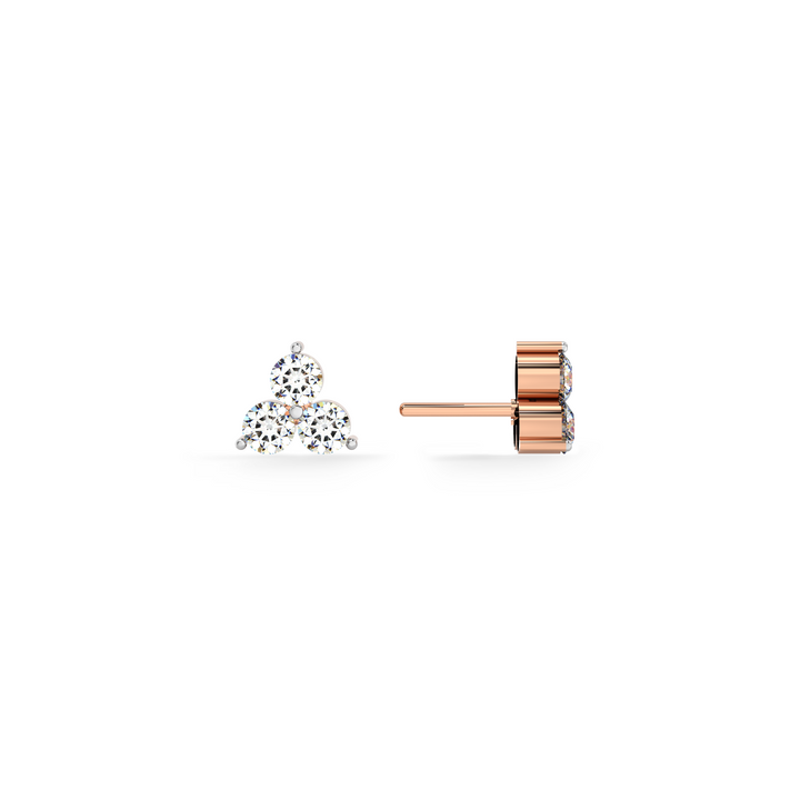Three brilliant diamonds come together in a sleek triangular arrangement, creating a minimal yet eye-catching design. These earrings offer a perfect balance of elegance and modernity, making them an ideal accessory for everyday sophistication or evening glamour.