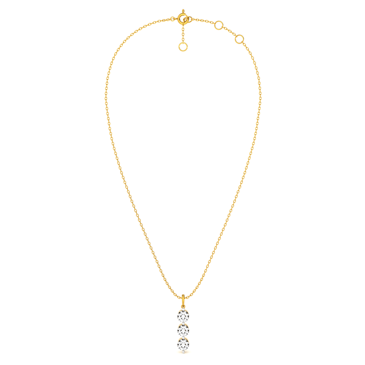 The Triple Glow Pendant features a sleek vertical trio of sparkling stones, symbolizing balance and harmony. Its modern linear design adds a touch of sophistication that works for both minimal everyday looks and bold layered styling. A versatile pendant that offers sparkle from day to night.