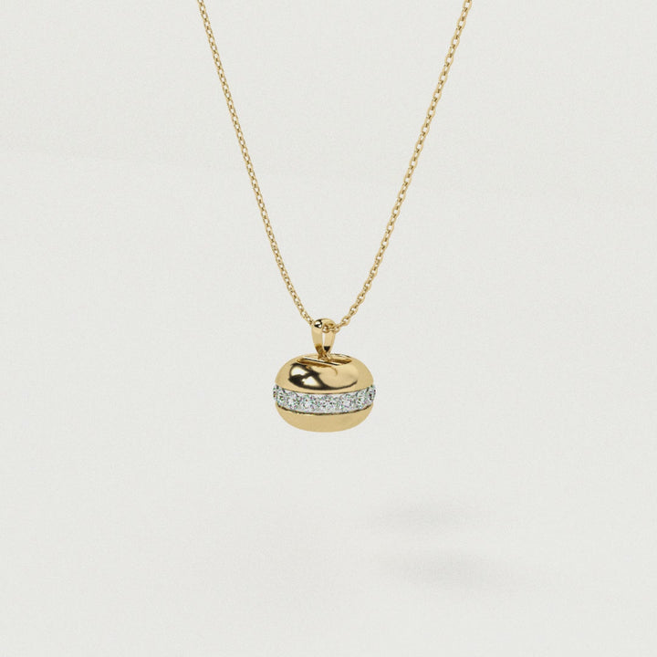 Vintage-inspired with a modern twist, the Twilight Bell showcases a dome-shaped pendant topped with a 0.12 carat diamond. Its bold charm makes it a standout piece for festive wear or Indo-western styling.
