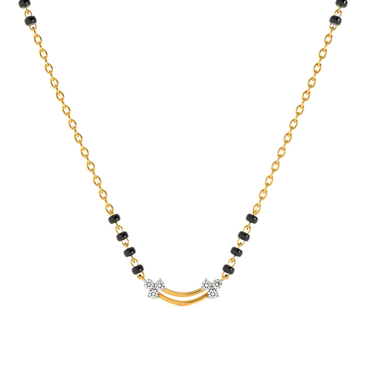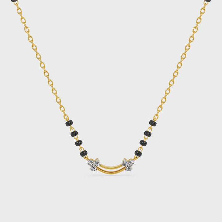 The Twin Blossom Lab Grown Diamond Mangalsutra is inspired by floral elegance, featuring two radiant diamond clusters connected by a graceful bar. The blossoms represent love, purity, and harmony, while the bar symbolizes stability and togetherness. Each lab grown diamond shines with brilliance, enhancing the design’s charm and symbolic depth. This piece blends contemporary artistry with traditional meaning, making it a radiant emblem of marital devotion.